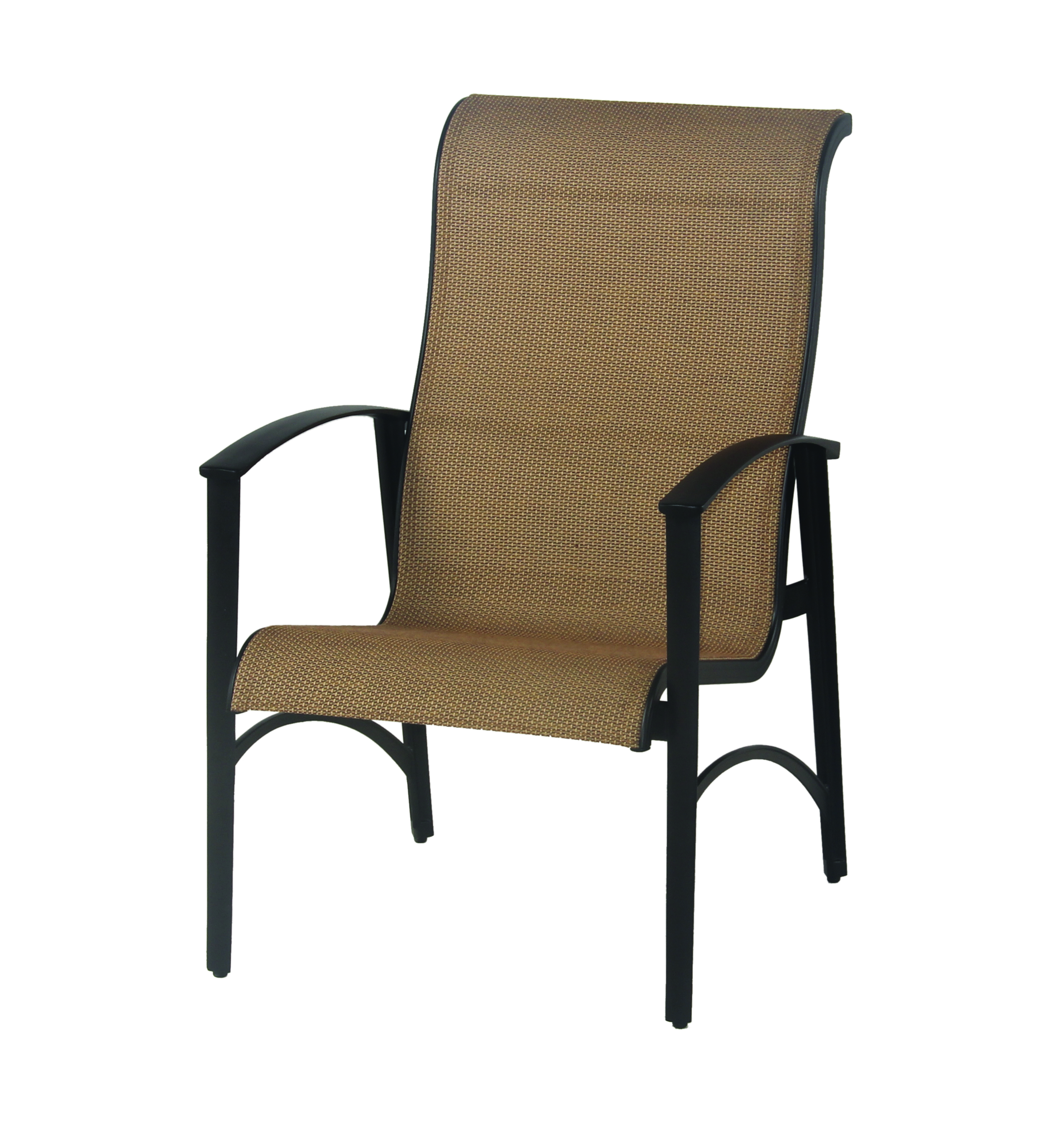 Clayton Sling Dining chair in desert bronze with augustine fennel sling.